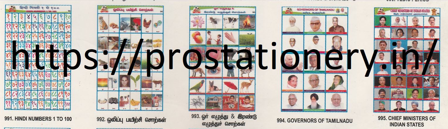 991.Hindi Numbers 1 to 100 ,992.ஒலிப்பு பயிற்சி சொற்கள் ,993.ஓர் எழுத்து & இரண்டு எழுத்து சொற்கள் ,994.Governors of TamilNadu ,995.Chief Ministers of Indian States